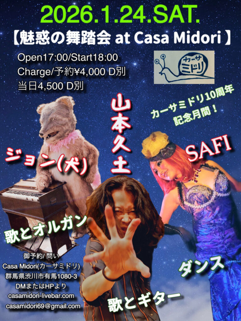 出演☆山本久土vo.gt / ジョン(犬)vo.org. / SAFI dance