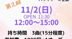 2025年10月30日 / 最終更新日時 : 2025年10月30日 カーサミドリ LIVE 2025年11月2日(日) 【ハラサワーズ企画Ooen Mic Vol.2】持ち時間3曲 15分程度参加費 ¥1,000+order観覧¥500+order